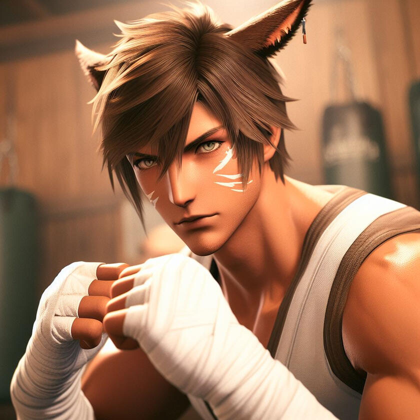 Kai'to has been learning and fighting using many Mixed Martial Arts various techniques in one of Kugane's Dojos, a specialized place for training this style of combat. Kai'to started off as a child learning Karate and Judo, progressing to training in boxing and kickboxing in his early teenage years. By his mid-teens, he was focusing on Ju-Jitsu and Muay-Thai, often training nearly every weekend. Now, as an adult, Kai'to loves treasure hunting and uses Mixed Martial Arts as a tool to help him achieve his goals. Kai'to has also taken part in numerous tournaments, earning a hand full of trophies and medals along the way.His training has produced a toned and strong physique, as well as increased fitness and endurance. He has many friends who also attend the Dojo and enjoy the same kind of training as him. His fighting style is a blend of all these forms of martial arts, allowing him to bring their combined techniques to the ring. Kai'to is now continuing to learn, train, and participate in tournaments, nourishing his love of Mixed Martial Arts.Many sensei's and students have seen him become one of the most compatible agile fighters in Kugane. He has adapted a combination of punches, kicks, and grappling, using both the strength of his arms and legs to press his advantage. Kai'to is not only a formidable foe on the battlefield, but he is also incredibly durable, showing an impressive amount of endurance and resilience to withstand punishing strikes and potentially debilitating damage. Kai'to is a well-rounded fighter, having mastered a variety of different martial arts and disciplines, allowing him to become a proficient and dangerous fighter. Some weekends, Kai'to makes it to the Dojo for extra training, working hard on honing his skills and constantly striving to become a better fighter, showing his peers his ability to fight and win in any or most situations. His fighting style has been formed out of necessity, combining the various arts he has studied into one powerful technique, allowing him to manipulate his move-sets in battles and prove his mettle as a formidable warrior of Mixed Martial Arts.He trains with the same focus and dedication, continuous dedication to his art, practicing by himself on a regular basis and usually spending weekends in the dojo to spar with peers. His Mixed Martial Arts style is, backed up by his strong and toned, muscular physique. His mastery of the spear was also taught by monks, mixed with acrobatics and some techniques borrowed from martial arts dance, is commendable. On top of that, he is also trained to take control of his energy through meditation and Tai-Chi, and to increase his mental strength through yoga.