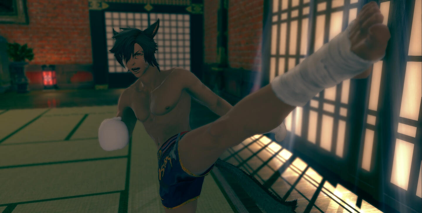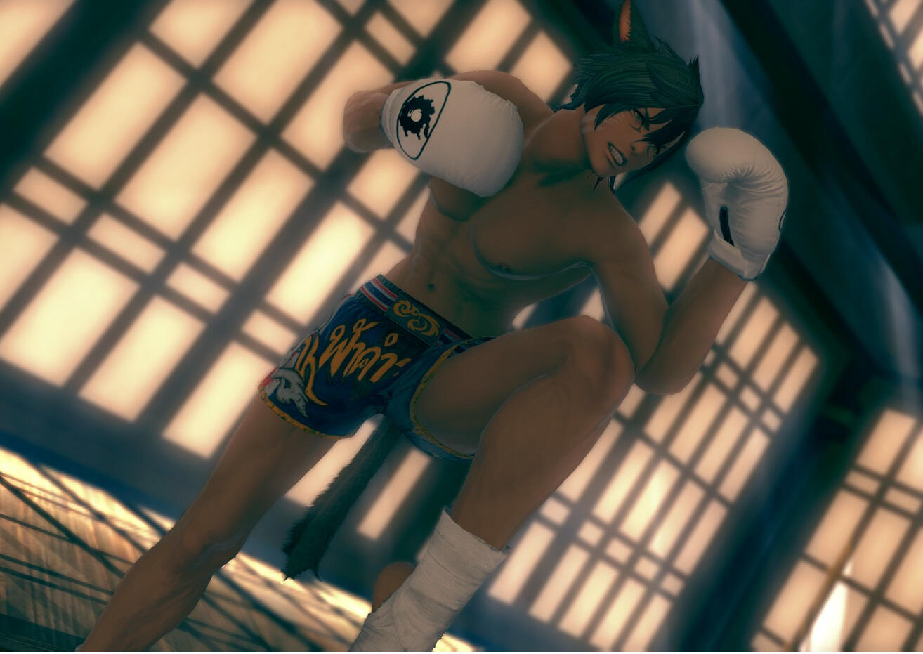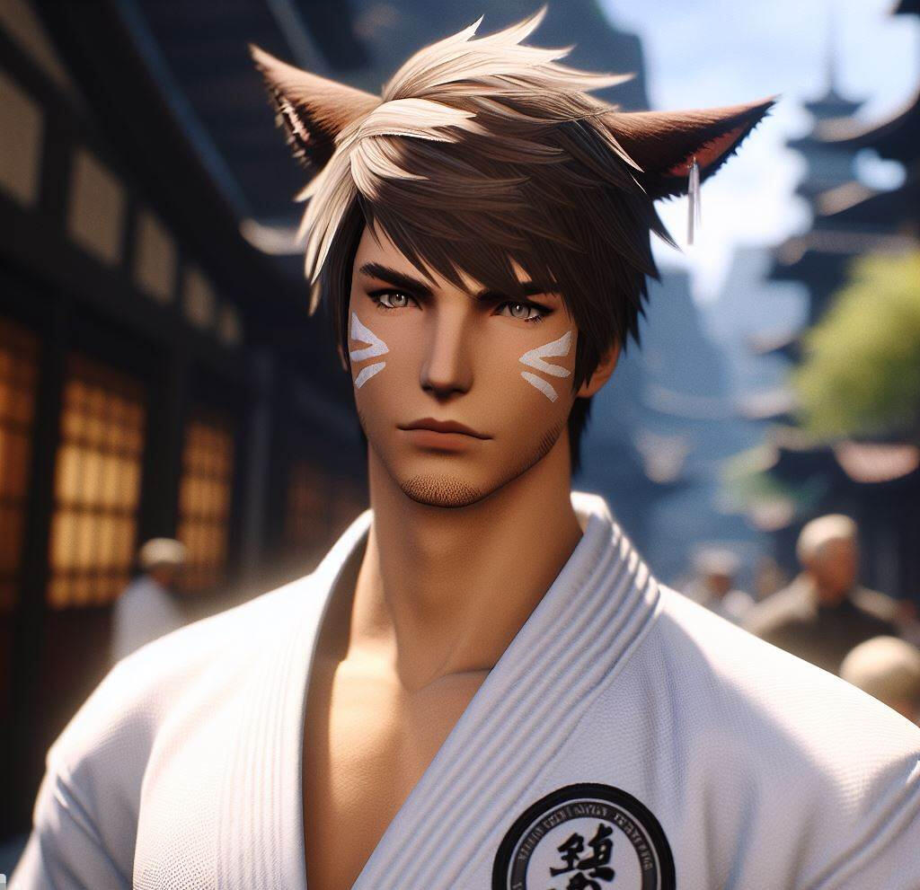 Kai'to has been learning and fighting using many Mixed Martial Arts various techniques in one of Kugane's Dojos, a specialized place for training this style of combat. Kai'to started off as a child learning Karate and Judo, progressing to training in boxing and kickboxing in his early teenage years. By his mid-teens, he was focusing on Ju-Jitsu and Muay-Thai, often training nearly every weekend. Now, as an adult, Kai'to loves treasure hunting and uses Mixed Martial Arts as a tool to help him achieve his goals. Kai'to has also taken part in numerous tournaments, earning a hand full of trophies and medals along the way.His training has produced a toned and strong physique, as well as increased fitness and endurance. He has many friends who also attend the Dojo and enjoy the same kind of training as him. His fighting style is a blend of all these forms of martial arts, allowing him to bring their combined techniques to the ring. Kai'to is now continuing to learn, train, and participate in tournaments, nourishing his love of Mixed Martial Arts.Many sensei's and students have seen him become one of the most compatible agile fighters in Kugane. He has adapted a combination of punches, kicks, and grappling, using both the strength of his arms and legs to press his advantage. Kai'to is not only a formidable foe on the battlefield, but he is also incredibly durable, showing an impressive amount of endurance and resilience to withstand punishing strikes and potentially debilitating damage. Kai'to is a well-rounded fighter, having mastered a variety of different martial arts and disciplines, allowing him to become a proficient and dangerous fighter. Some weekends, Kai'to makes it to the Dojo for extra training, working hard on honing his skills and constantly striving to become a better fighter, showing his peers his ability to fight and win in any or most situations. His fighting style has been formed out of necessity, combining the various arts he has studied into one powerful technique, allowing him to manipulate his move-sets in battles and prove his mettle as a formidable warrior of Mixed Martial Arts.He trains with the same focus and dedication, continuous dedication to his art, practicing by himself on a regular basis and usually spending weekends in the dojo to spar with peers. His Mixed Martial Arts style is, backed up by his strong and toned, muscular physique. His mastery of the spear was also taught by monks, mixed with acrobatics and some techniques borrowed from martial arts dance, is commendable. On top of that, he is also trained to take control of his energy through meditation and Tai-Chi, and to increase his mental strength through yoga.